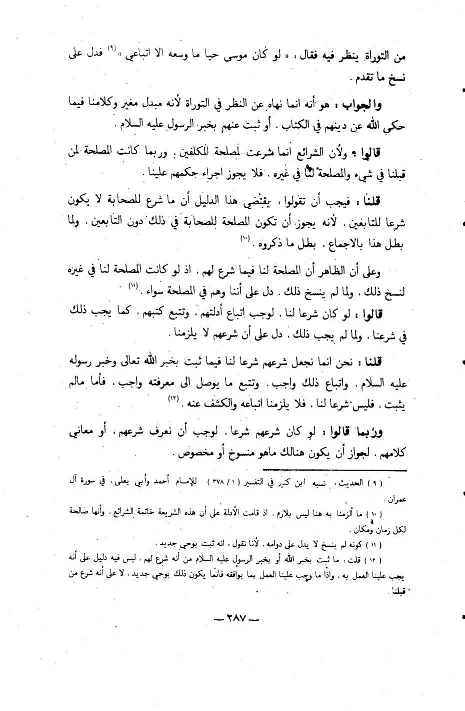 وَالْجَوَاب هُوَ أَنه إِنَّمَا نَهَاهُ عَن النّظر فِي التَّوْرَاة لِأَنَّهُ مبدل مغير وكلامنا فِيمَا حكى الله عَن دينهم فِي الْكتاب أَو ثَبت عَنْهُم بِخَبَر الرَّسُول عَلَيْهِ السَّلَام
