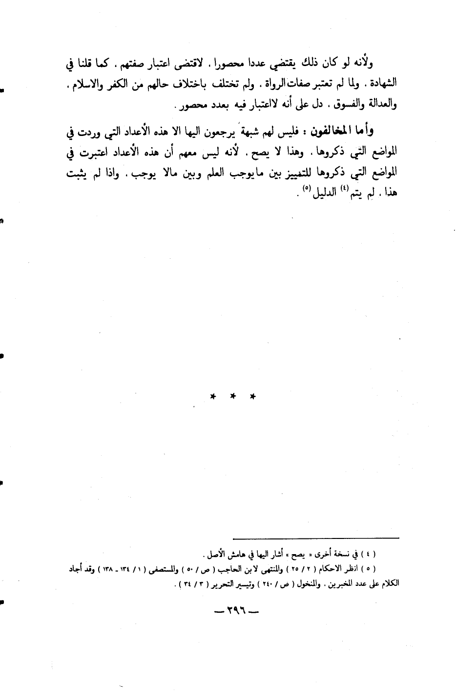 وَأما المخالفون فَلَيْسَ لَهُم شُبْهَة يرجعُونَ إِلَيْهَا إِلَّا هَذِه الْأَعْدَاد الَّتِي وَردت فِي الْمَوَاضِع الَّتِي ذكروها وَهَذَا لَا يَصح لِأَنَّهُ لَا لَيْسَ مَعَهم أَن هَذِه الْأَعْدَاد اعْتبرت فِي الْمَوَاضِع الَّتِي ذكروها للتمييز بَين مَا يُوجب الْعلم وَبَين مَالا يُوجب وَإِذا لم يثبت هَذَا لم يتم الدَّلِيل