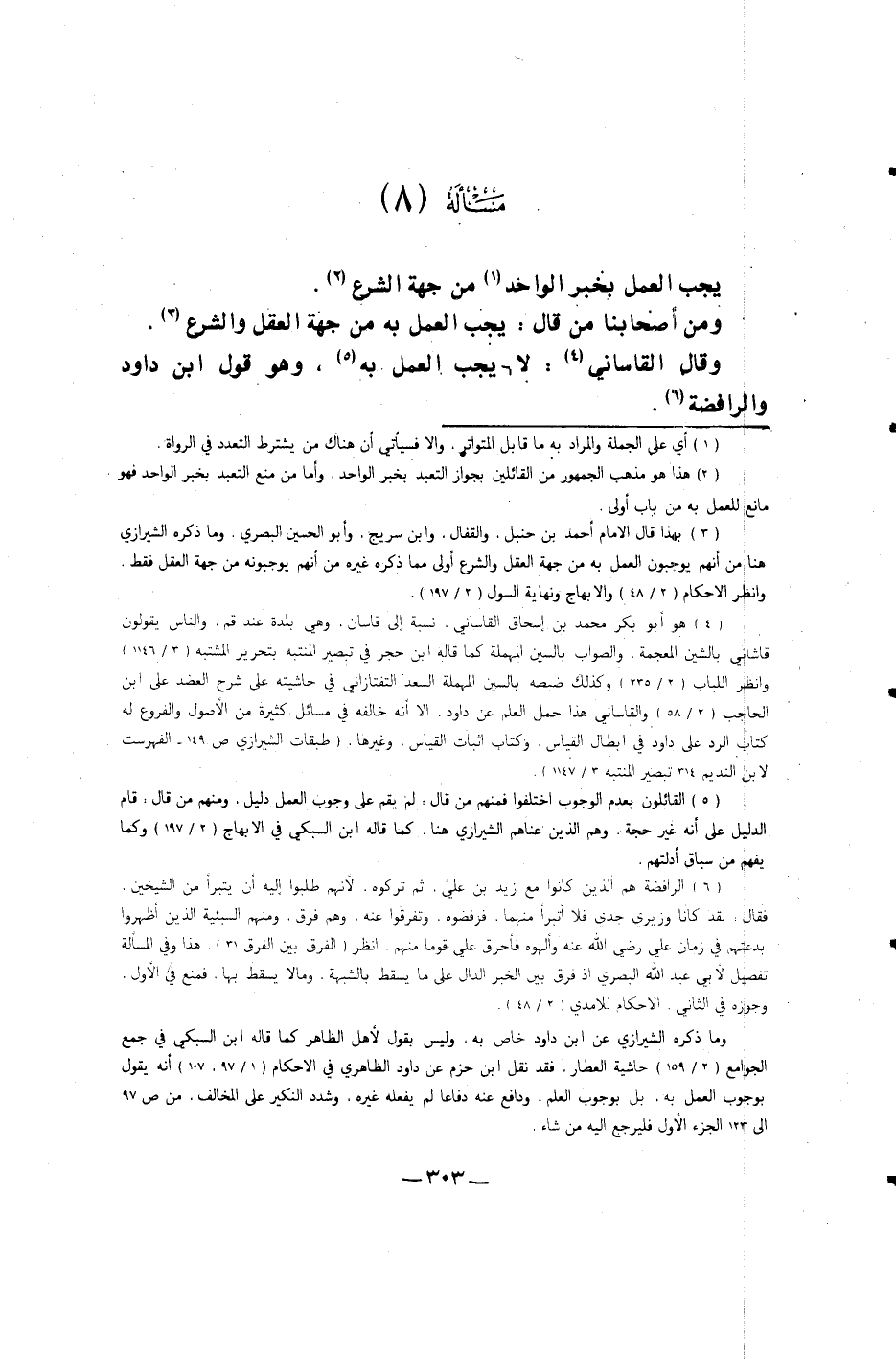 يجب الْعَمَل بِخَبَر الْوَاحِد من جِهَة الشَّرْع