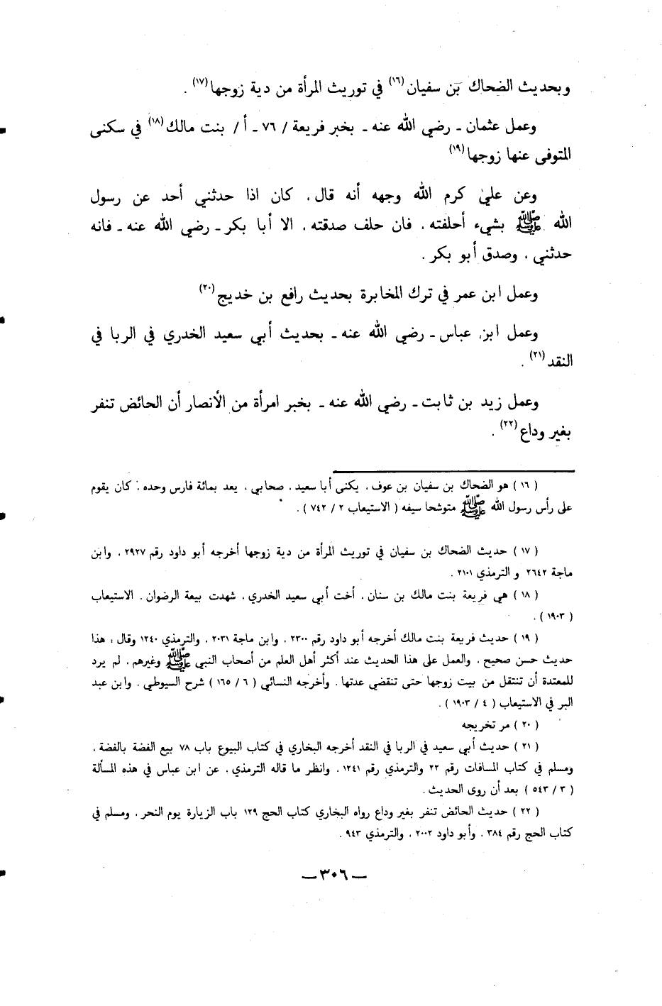 وَعمل عُثْمَان رَضِي الله عَنهُ بِخَبَر فريعة بنت مَالك فِي سُكْنى الْمُتَوفَّى عَنْهَا زَوجهَا