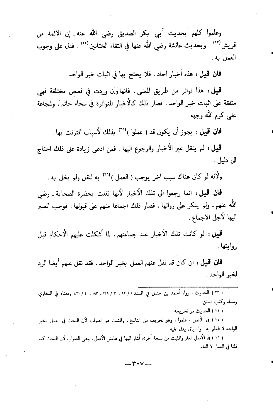 وَعَلمُوا كلهم بِحَدِيث أبي بكر الصّديق رَضِي الله عَنهُ إِن الْأَئِمَّة من قُرَيْش وَبِحَدِيث عَائِشَة رَضِي الله عَنْهَا فِي التقاء الختانين فَدلَّ على وجوب الْعَمَل بِهِ