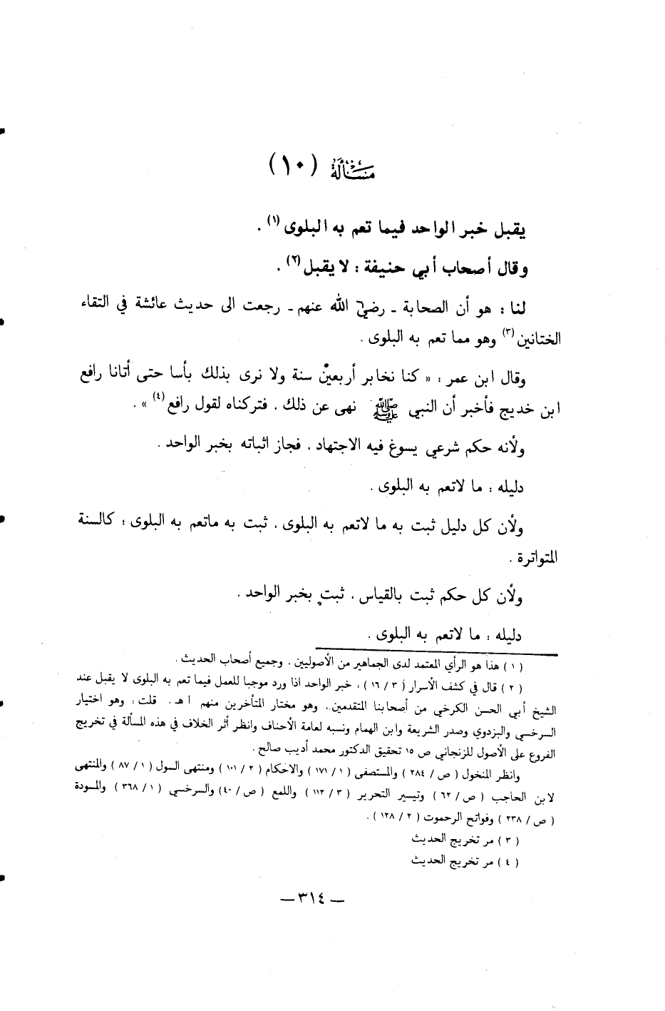 يقبل خبر الْوَاحِد فِيمَا تعم بِهِ الْبلوى