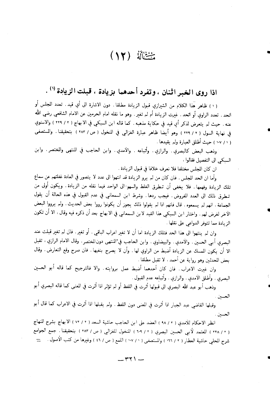 إِذا روى الْخَبَر اثْنَان وَتفرد أَحدهمَا بِزِيَادَة قبلت الزِّيَادَة