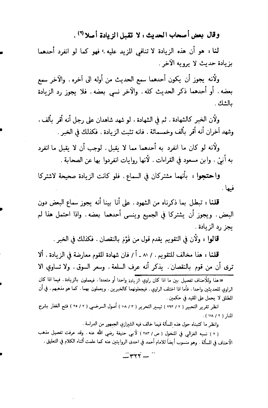 قُلْنَا تبطل بِمَا ذَكرْنَاهُ من الشُّهُود على أَنا بَينا أَنه يجوز سَماع الْبَعْض دون الْبَعْض وَيجوز أَن يشتركا فِي الْجَمِيع وينسى أَحدهمَا بعضه وَإِذا احْتمل هَذَا لم يجز رد الزِّيَادَة