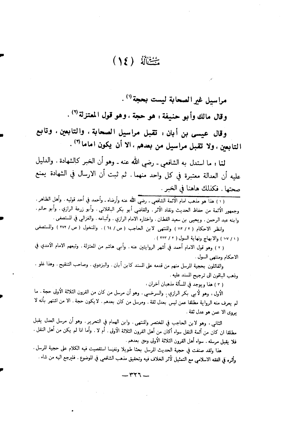 وَقَالَ عِيسَى بن أبان تقبل مَرَاسِيل الصَّحَابَة وَالتَّابِعِينَ وتابع التَّابِعين وَلَا تقبل مَرَاسِيل من بعدهمْ إِلَّا أَن يكون إِمَامًا