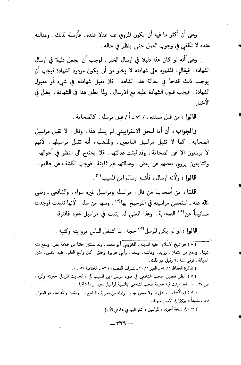 وعَلى أَنه لَو كَانَ هَذَا دَلِيلا فِي إرْسَال الْخَبَر لوَجَبَ أَن يَجْعَل دَلِيلا فِي إرْسَال الشَّهَادَة فَيُقَال الْمَشْهُود على شَهَادَته لَا يَخْلُو من أَن يكون مَرْدُود الشَّهَادَة فَيجب أَن يُوجب ذَلِك قدحا فِي عَدَالَة هَذَا الشَّاهِد فَلَا تقبل شَهَادَته فِي شَيْء أَو مَقْبُول الشَّهَادَة فَيجب قبُول الشَّهَادَة عَلَيْهِ مَعَ الْإِرْسَال وَلما بَطل هَذَا فِي الشَّهَادَة بَطل فِي الْأَخْبَار