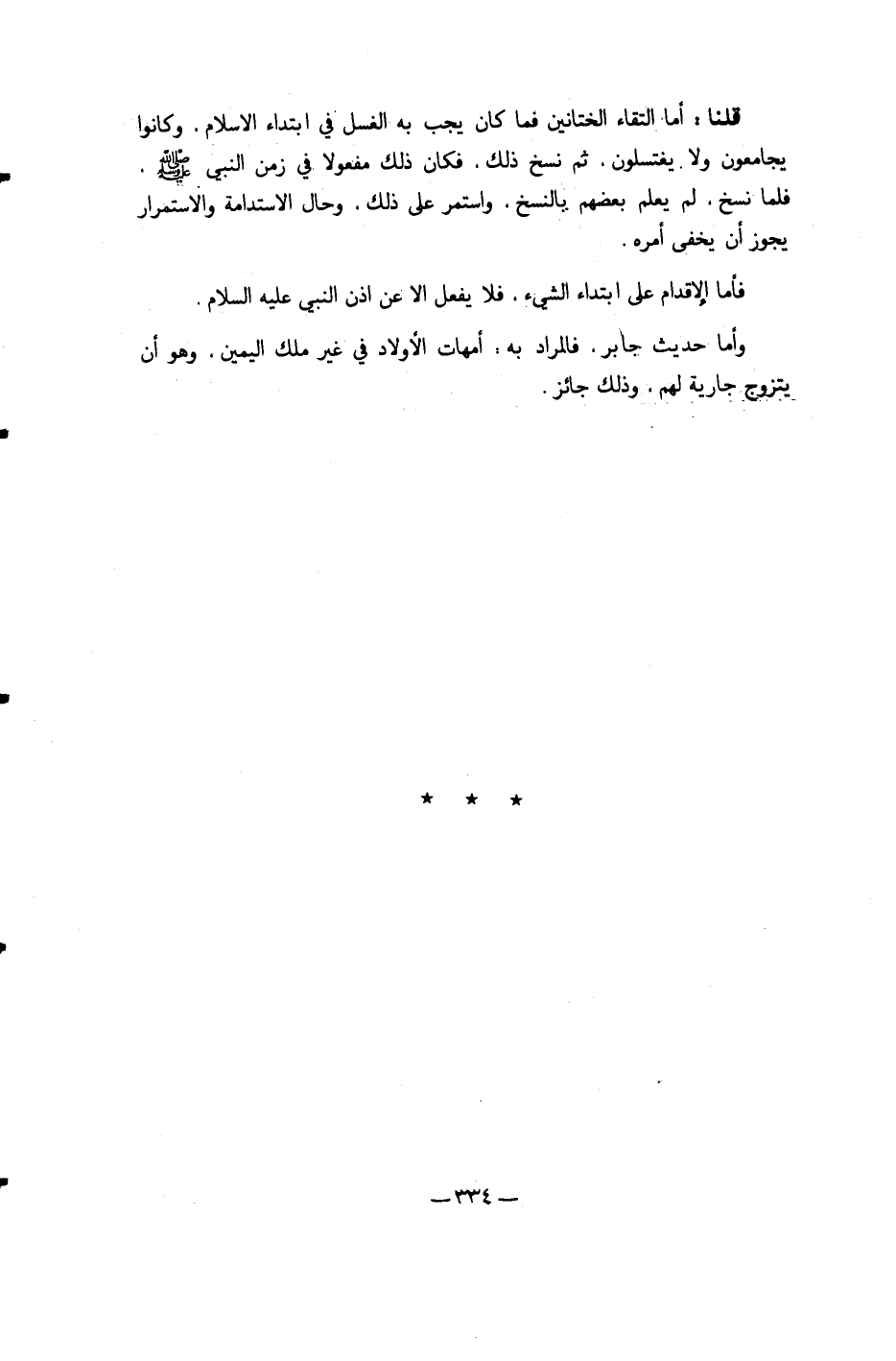 قُلْنَا أما التقاء الختانين فَمَا كَانَ يجب بِهِ الْغسْل فِي ابْتِدَاء الْإِسْلَام وَكَانُوا يُجَامِعُونَ وَلَا يغتسلون ثمَّ نسخ ذَلِك فَكَانَ ذَلِك مَفْعُولا فِي زمن النَّبِي صلى الله عَلَيْهِ وَسلم فَلَمَّا نسخ لم يعلم بَعضهم بالنسخ وَاسْتمرّ على ذَلِك وَحَال الاستدامة والاستمرار يجوز أَن يخفى أمره