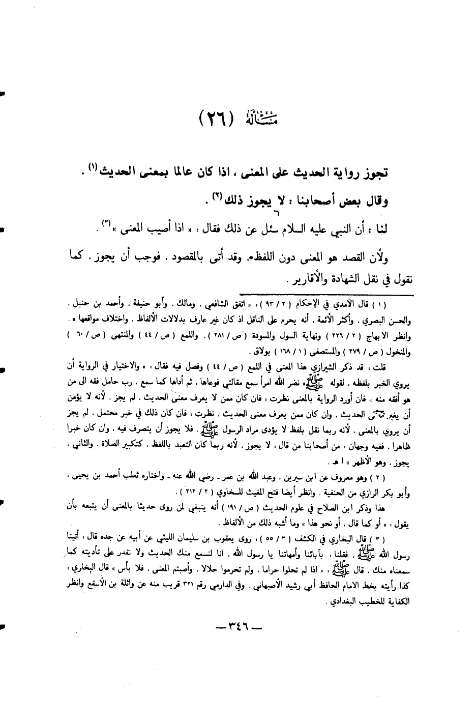 تجوز رِوَايَة الحَدِيث على الْمَعْنى إِذا كَانَ عَالما بِمَعْنى الحَدِيث