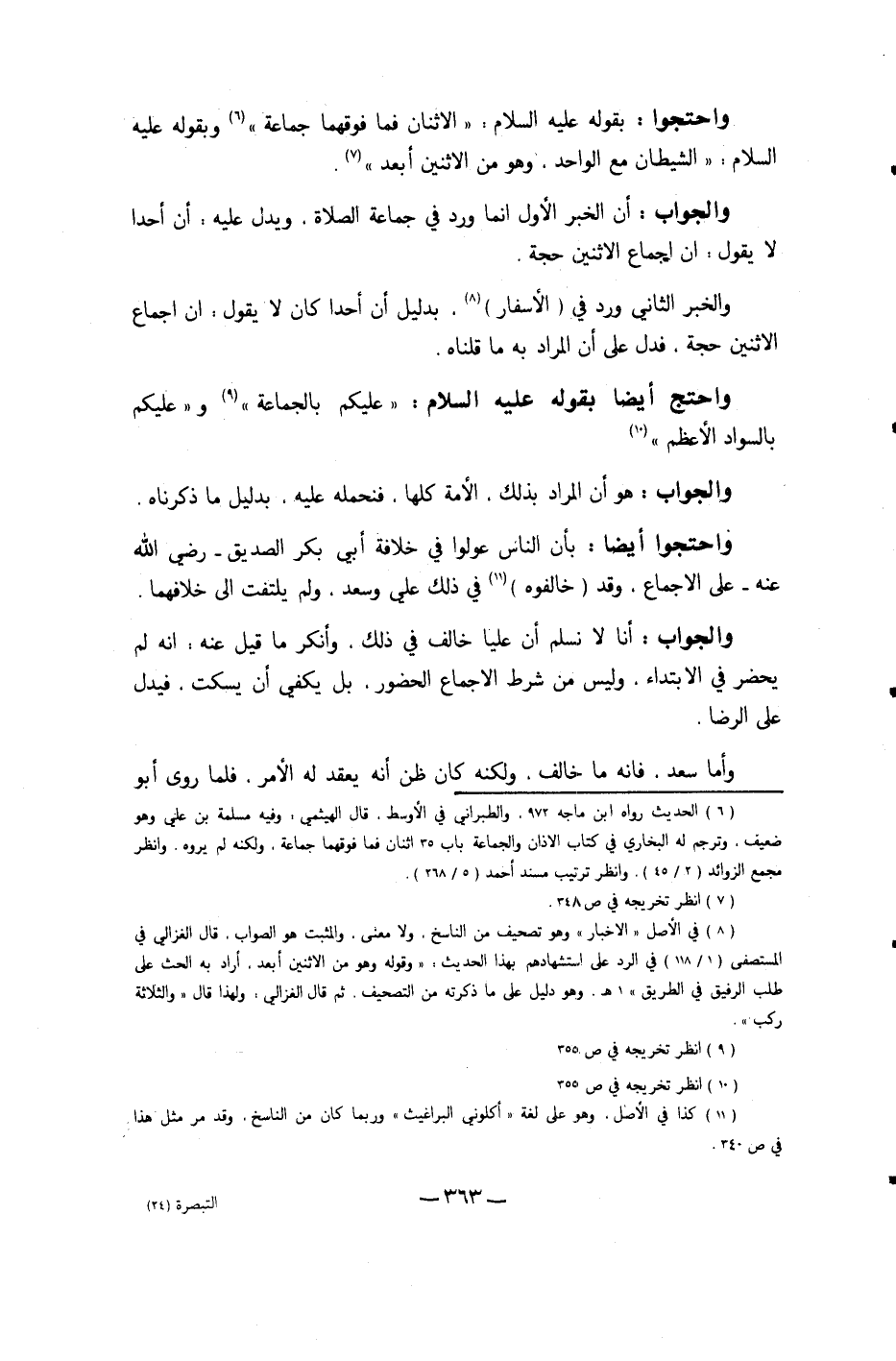 وَاحْتج أَيْضا بقوله عَلَيْهِ السَّلَام عَلَيْكُم بِالْجَمَاعَة وَعَلَيْكُم بِالسَّوَادِ الْأَعْظَم