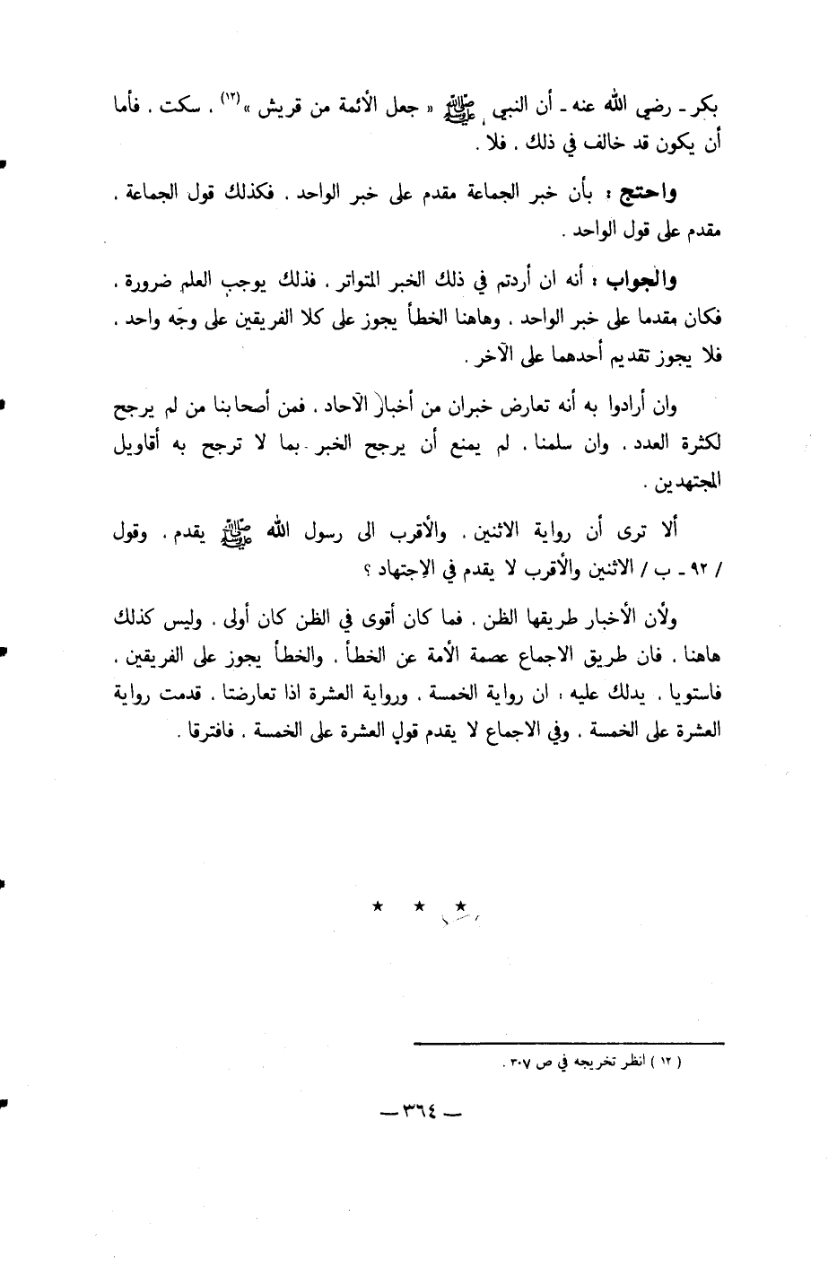 بكر رَضِي الله عَنهُ أَن النَّبِي صلى الله عَلَيْهِ وَسلم جعل الْأَئِمَّة من قُرَيْش سكت فَأَما أَن يكون قد خَالف فِي ذَلِك فَلَا