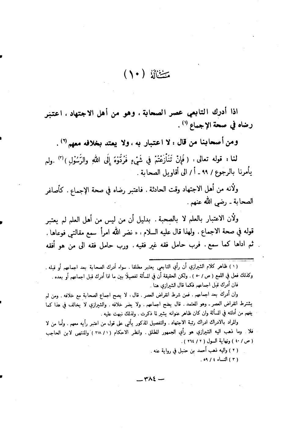 إِذا أدْرك التَّابِعِيّ عصر الصَّحَابَة وَهُوَ من أهل الِاجْتِهَاد اعْتبر رِضَاهُ فِي صِحَة الْإِجْمَاع