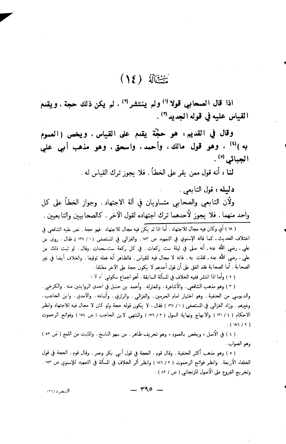 وَلِأَن التَّابِعِيّ والصحابي متساويان فِي آلَة الِاجْتِهَاد وَجَوَاز الْخَطَأ على كل وَاحِد مِنْهُمَا فَلَا يجوز لأَحَدهمَا ترك اجْتِهَاده لقَوْل الآخر كالصحابيين والتابعيين