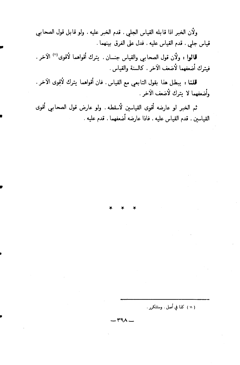 ثمَّ الْخَبَر لَو عَارضه أقوى القياسين لأسقطه وَلَو عَارض قَول الصَّحَابِيّ أقوى القياسين قدم الْقيَاس عَلَيْهِ فَإِذا عَارضه أضعفهما قدم عَلَيْهِ