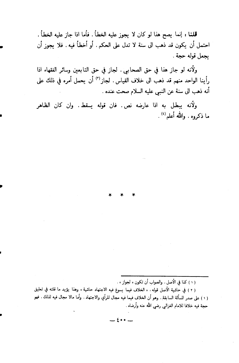 قُلْنَا إِنَّمَا يَصح هَذَا لَو كَانَ لَا يجوز عَلَيْهِ الْخَطَأ فَأَما إِذا جَازَ عَلَيْهِ الْخَطَأ احْتمل أَن يكون قد ذهب إِلَى سنة لَا تدل على الحكم أَو أَخطَأ فِيهِ فَلَا يجوز أَن يَجْعَل قَوْله حجَّة