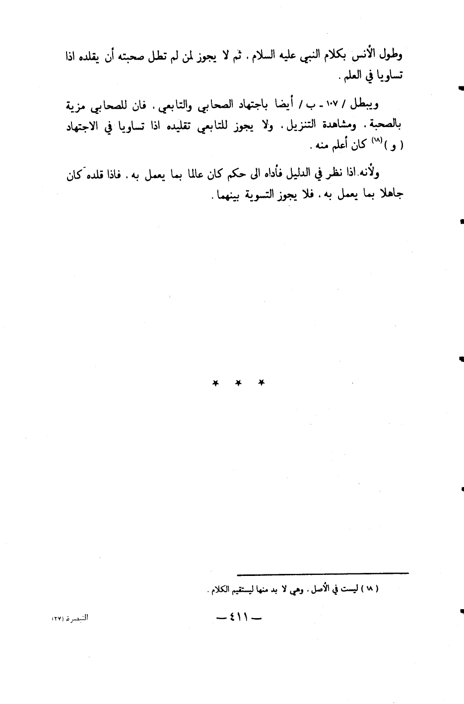 وَيبْطل أَيْضا بِاجْتِهَاد الصَّحَابِيّ والتابعي فَإِن للصحابي مزية بالصحبة ومشاهدة التَّنْزِيل وَلَا يجوز للتابعي تَقْلِيده إِذا تَسَاويا فِي الِاجْتِهَاد وَكَانَ أعلم مِنْهُ