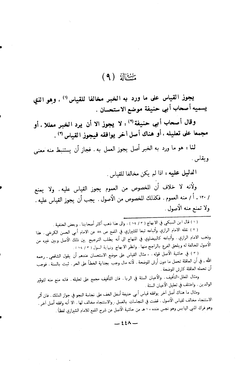 يجوز الْقيَاس على مَا ورد بِهِ الْخَبَر مُخَالفا للْقِيَاس وَهُوَ الَّذِي يُسَمِّيه أَصْحَاب أبي حنيفَة مَوضِع الِاسْتِحْسَان