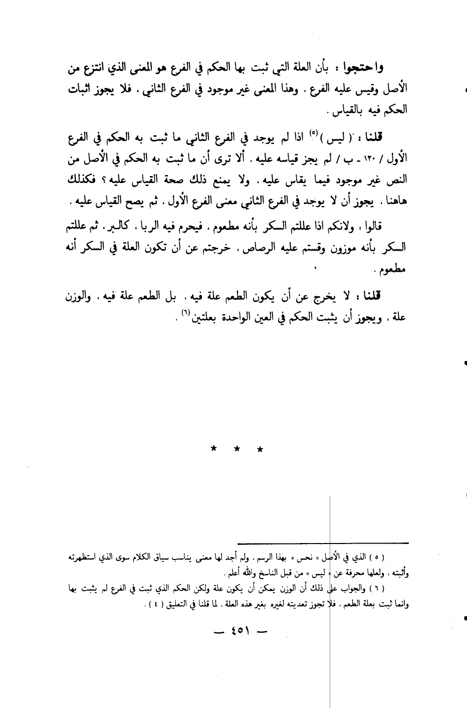 قَالُوا ولأنكم إِذا عللتم السكر بِأَنَّهُ مطعوم فَيحرم فِيهِ الرِّبَا كالبر ثمَّ عللتم السكر بِأَنَّهُ مَوْزُون وقستم عَلَيْهِ الرصاص خَرجْتُمْ عَن أَن تكون الْعلَّة فِي السكر أَنه مطعوم