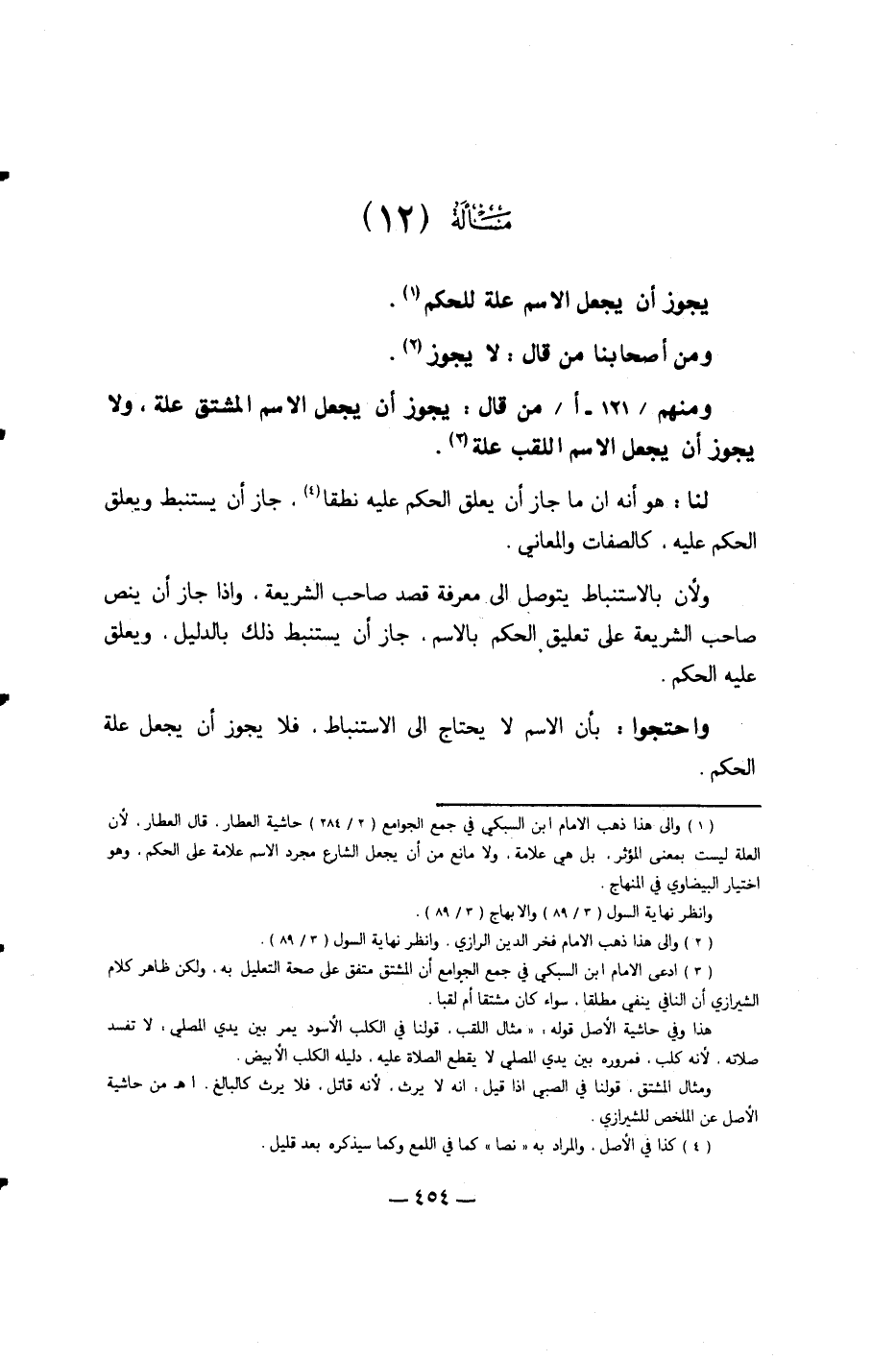 وَمِنْهُم من قَالَ يجوز أَن يَجْعَل الِاسْم الْمُشْتَقّ عِلّة وَلَا يجوز أَن يَجْعَل الِاسْم اللقب عِلّة