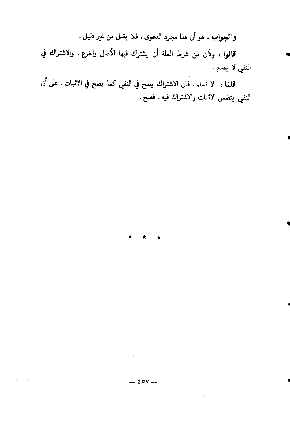 قَالُوا وَلِأَن من شَرط الْعلَّة أَن يشْتَرك فِيهَا الأَصْل وَالْفرع والاشتراك فِي النَّفْي لَا يَصح