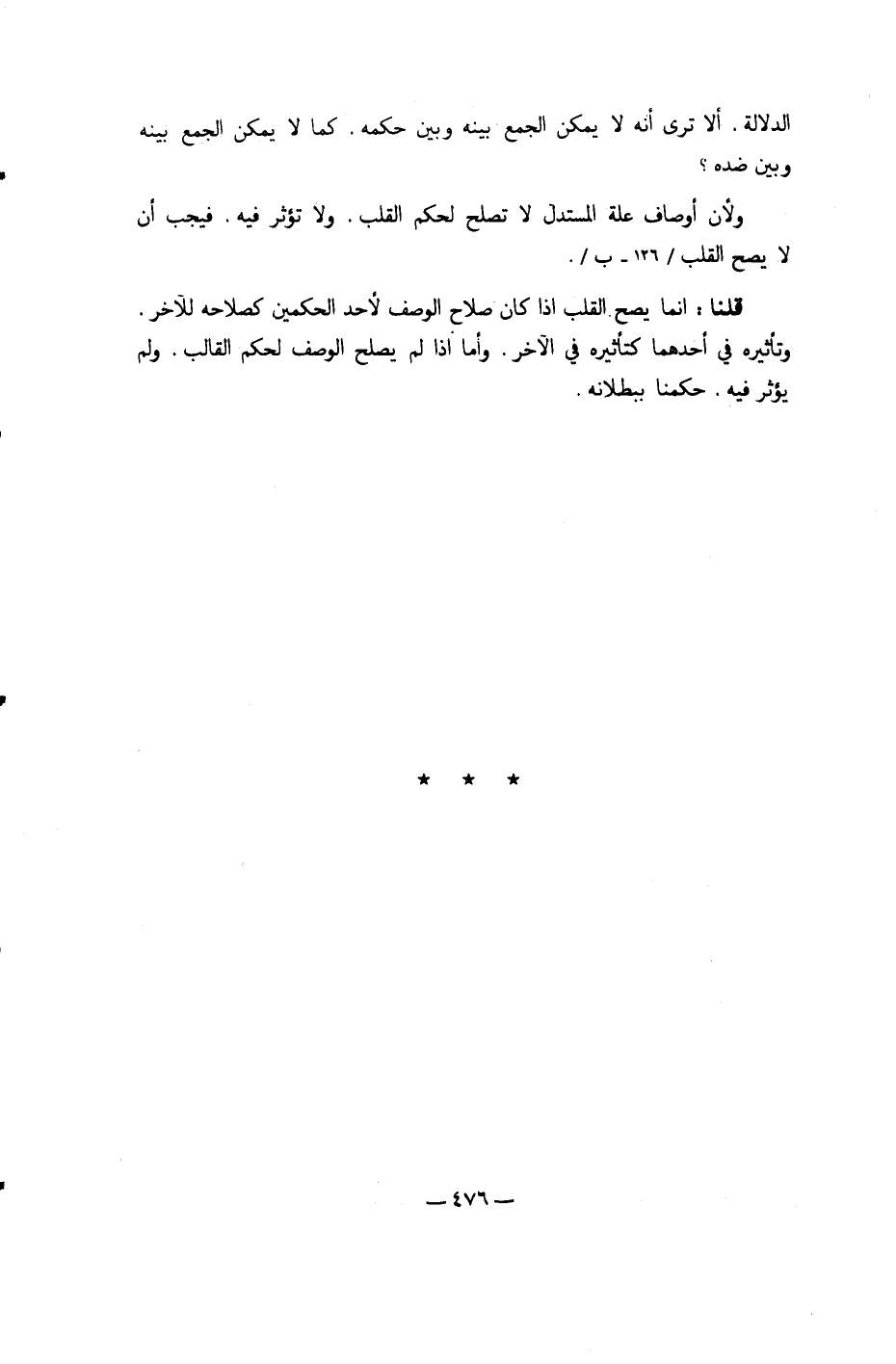 وَلِأَن أَوْصَاف عِلّة الْمُسْتَدلّ لَا تصلح لحكم الْقلب وَلَا تُؤثر فِيهِ فَيجب أَن لَا يَصح الْقلب