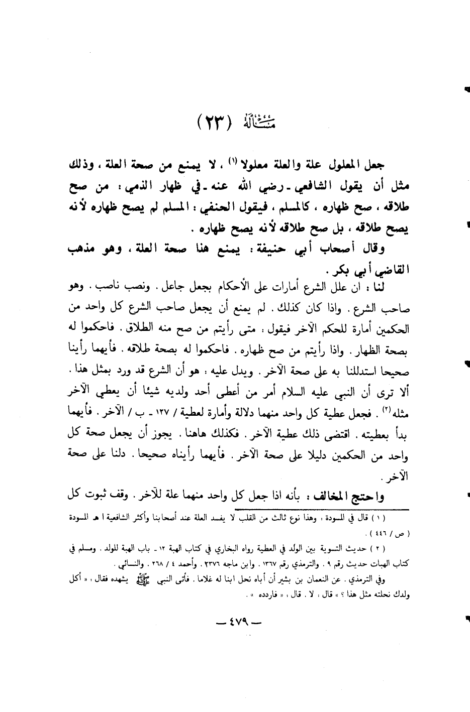 وَقَالَ أَصْحَاب أبي حنيفَة يمْنَع هَذَا صِحَة الْعلَّة وَهُوَ مَذْهَب القَاضِي أبي بكر