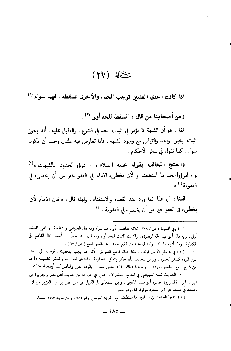 وَاحْتج الْمُخَالف بقوله عَلَيْهِ السَّلَام ادرؤوا الْحُدُود بِالشُّبُهَاتِ وادرؤوا الْحَد مَا اسْتَطَعْتُم وَلِأَن يخطىء الإِمَام فِي الْعَفو خير من أَن يخطىء فِي الْعقُوبَة