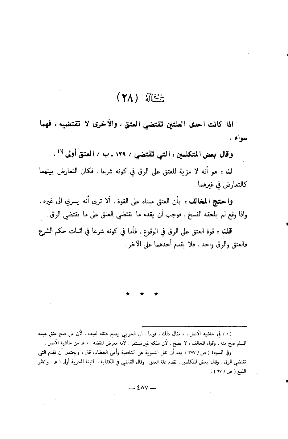 وَقَالَ بعض الْمُتَكَلِّمين الَّتِي تَقْتَضِي الْعتْق أولى