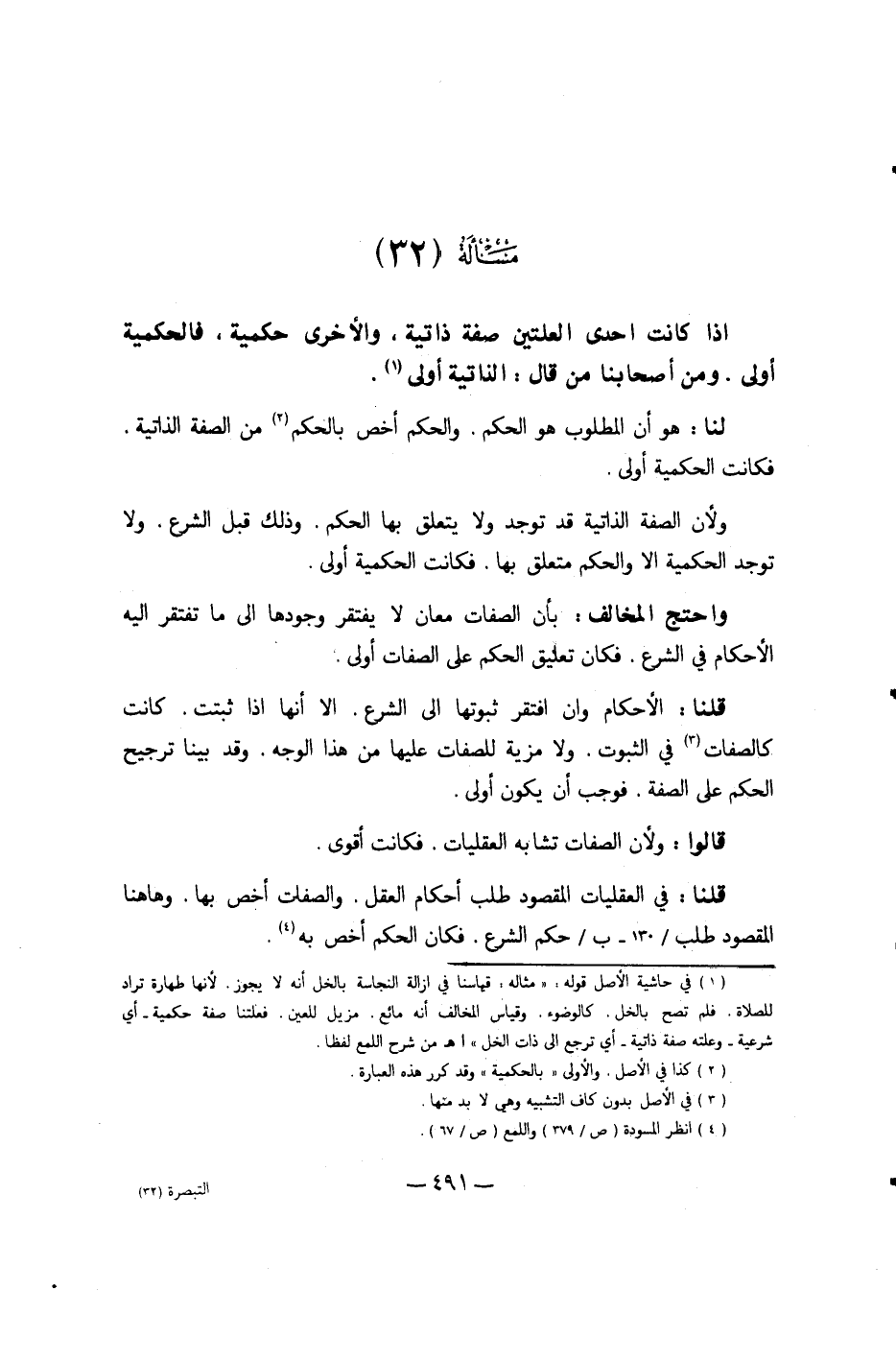 وَلِأَن الصّفة الذاتية قد تُوجد وَلَا يتَعَلَّق بهَا الحكم وَذَلِكَ قبل الشَّرْع وَلَا تُوجد الْحكمِيَّة إِلَّا وَالْحكم مُتَعَلق بهَا فَكَانَت الْحكمِيَّة أولى
