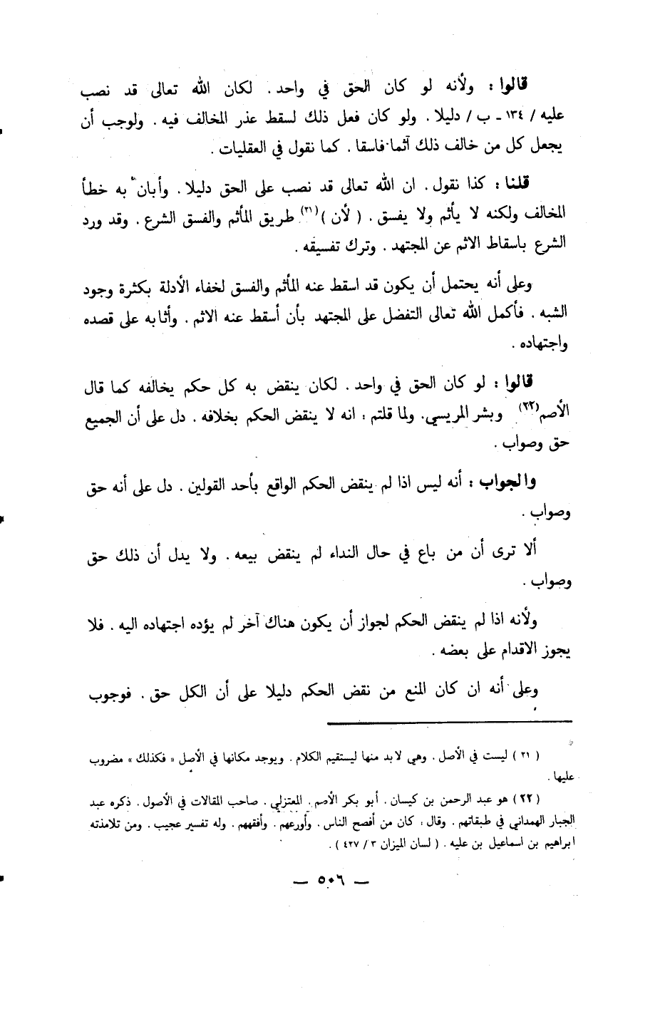 وعَلى أَنه إِن كَانَ الْمَنْع من نقض الحكم دَلِيلا على أَن الْكل حق فوجوب
