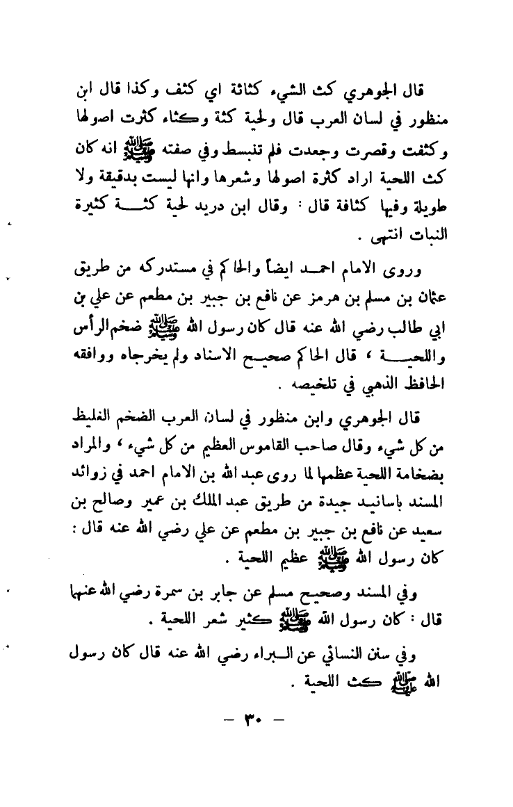 وفي المسند وصحيح مسلم عن جابر بن سمرة رضي الله عنهما قال: كان رسول الله صلى الله عليه وسلم كثير شعر اللحية.