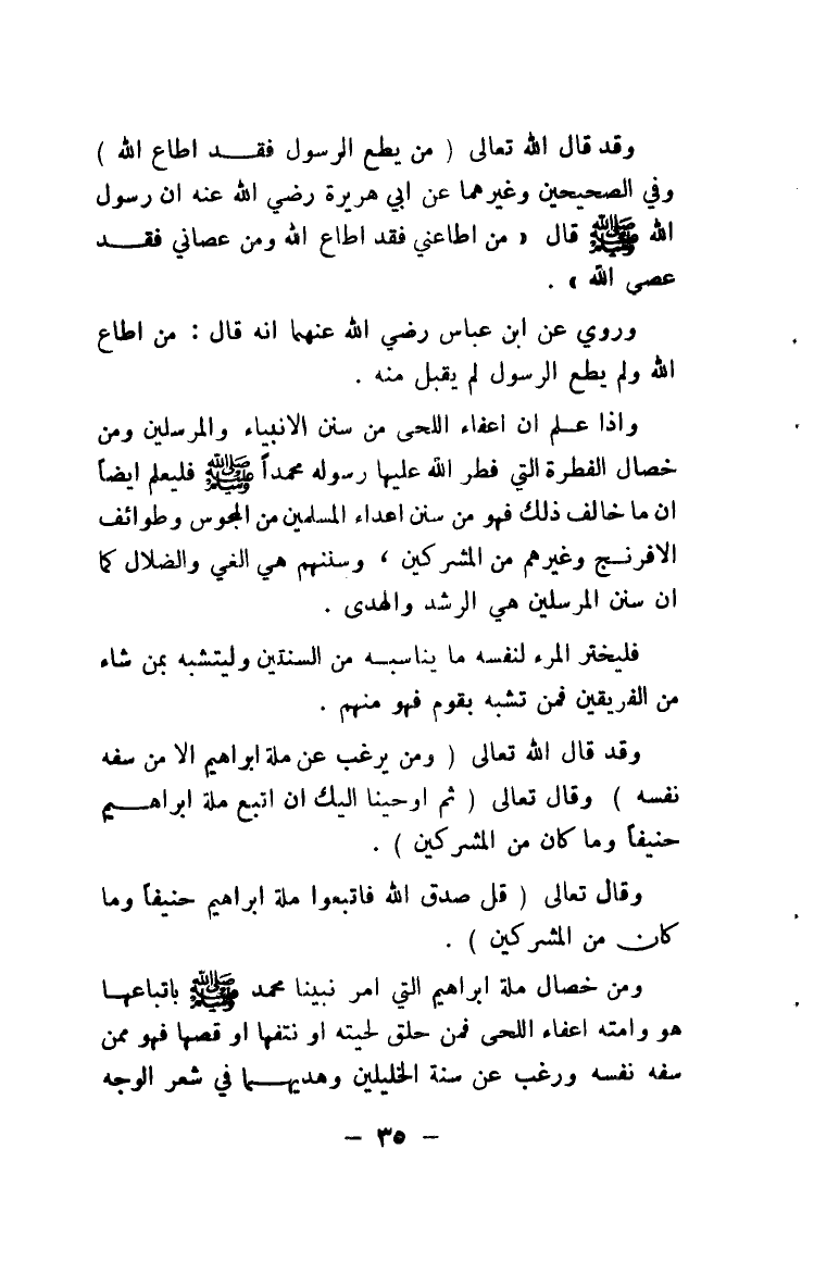 وقد قال الله تعالى {وَمَنْ يَرْغَبُ عَنْ مِلَّةِ إِبْرَاهِيمَ إِلَّا مَنْ سَفِهَ نَفْسَهُ} [البقرة: 130]، وقال تعالى {ثُمَّ أَوْحَيْنَا إِلَيْكَ أَنِ اتَّبِعْ مِلَّةَ إِبْرَاهِيمَ حَنِيفاً وَمَا كَانَ مِنَ الْمُشْرِكِينَ} [النحل: 123].