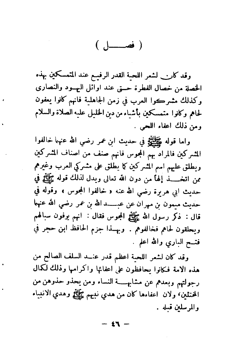 وقد كان لشعر اللحية القدر الرفيع عند المتمسكين بهذه الخصلة من خصال الفطرة حتى عند أوائل اليهود والنصارى وكذلك مشركو العرب في زمن الجاهلية فإنهم كانوا يعفون لحاهم وكانوا متمسكين بأشياء من دين الخليل عليه الصلاة والسلام ومن ذلك إعفاء اللحى.