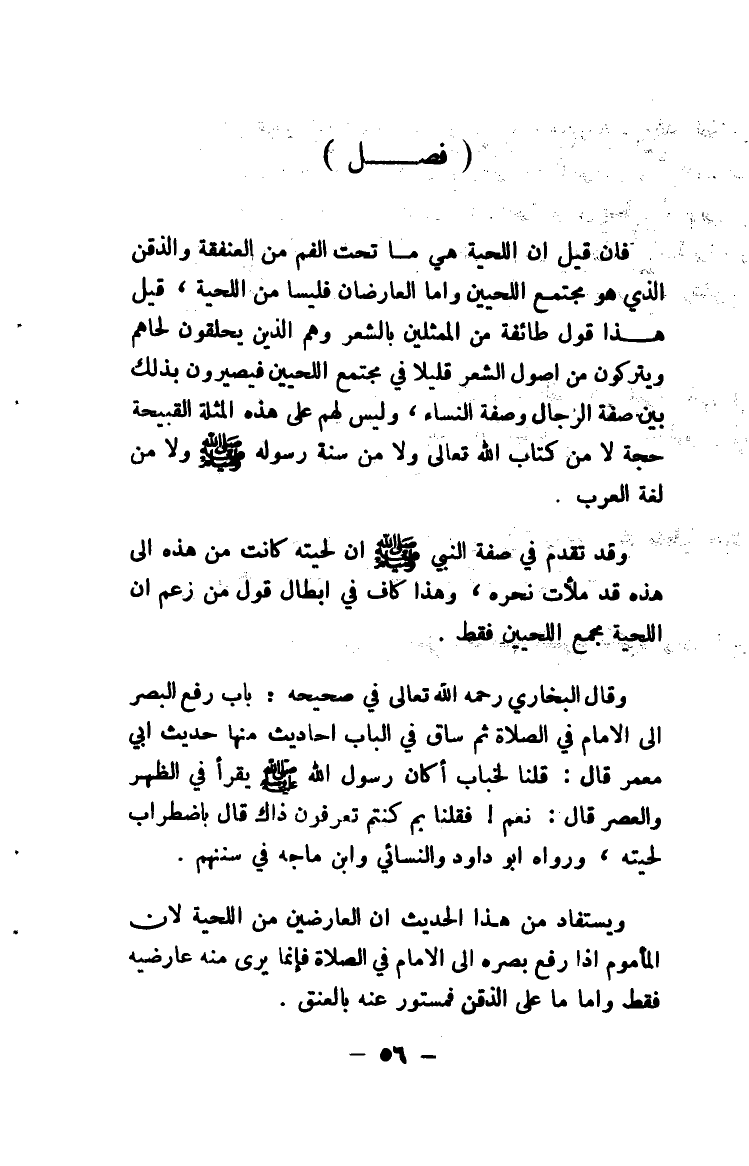 فإن قيل إن اللحية هي ما تحت الفم من العنفقة والذقن الذي هو مجتمع اللحيين وأما العارضان فليسا من اللحية، قيل هذا قول طائفة من الممثلين بالشعر وهم الذين يحلقون لحاهم ويتركون من أصول الشعر قليلاً في مجتمع اللحيين فيصيرون بذلك بين صفة الرجال وصفة النساء، وليس لهم على هذه المثلة القبيحة حجة لا من كتاب الله تعالى ولا من سنة رسوله صلى الله عليه وسلم ولا من لغة العرب.