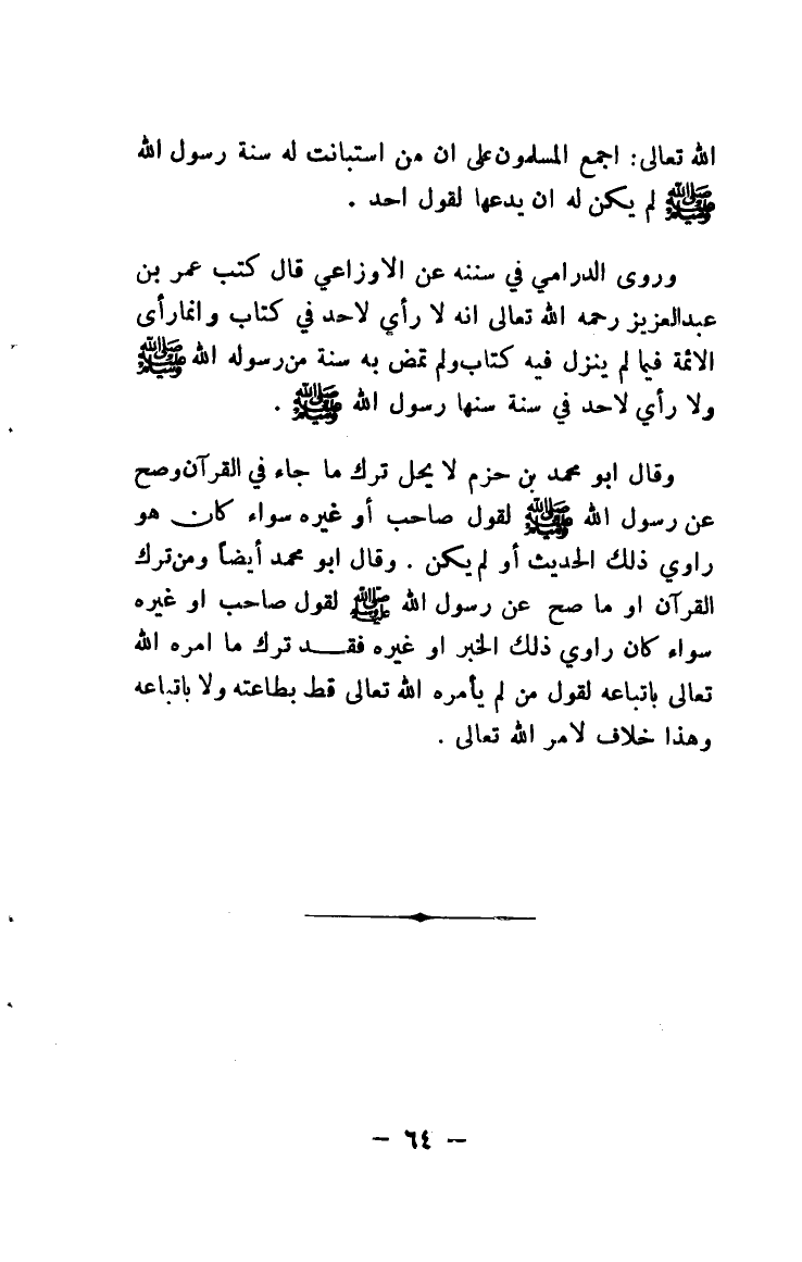 الله تعالى: أجمع المسلمون على أن من استبانت له سنة رسول الله صلى الله عليه وسلم لم يكن له أن يدعها لقول أحد.