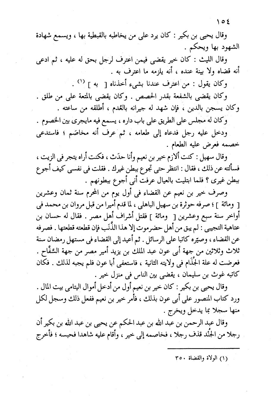 وقال يحيى بن بكير: كان يرد على من يخاطبه بالقبطية بها، ويسمع شهادة الشهود بها ويحكم.