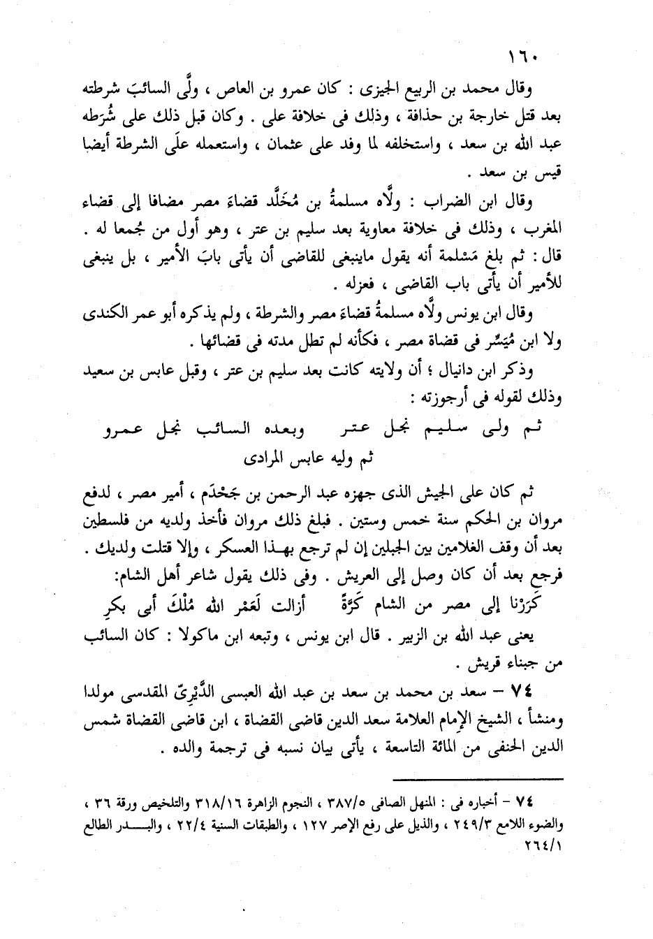 وقال ابن يونس ولاه مسلمةُ قضاءَ مصر والشرطة، ولم يذكره أبو عمر الكندي وال ابن مُيَسِّر في قضاة مصر، فكأنه لم تطل مدته في قضائها.