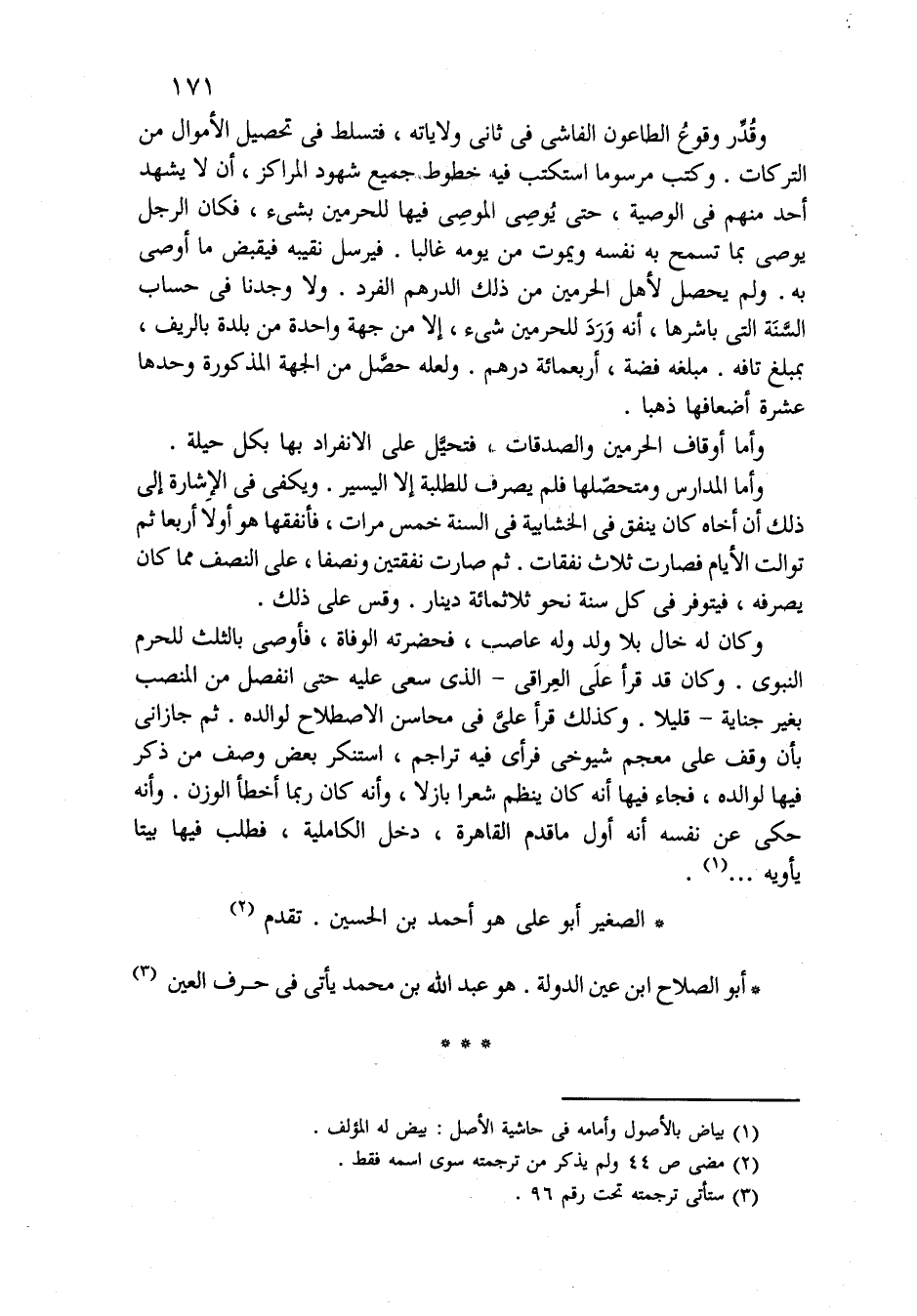 وأما أوقاف الحرمين والصدقات، فتحيَّل على الانفراد بها بكل حيلة.