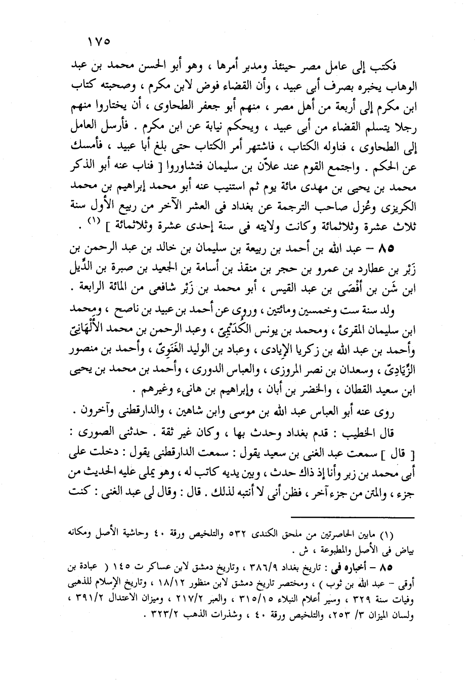 فكتب إلى عامل مصر حينئذ ومدبر أمرها وهو أبو الحسن محمد بن عبد الوهاب يخبره بصرف أبي عبيد، وأن القضاء فوض لابن مكرم، وصحبته كتاب ابن مكرم إلى أربعة من أهل مصر، منهم أبو جعفر الطحاوي، أن يختاروا منهم رجلاً يتسلم القضاء من أبي عبيد، ويحكم نيابة عن ابن مكرم. فأرسل العامل إلى الطحاوي، فناوله الكتاب، فاشتهر أمر الكتاب حتى بلغ أبا عبيد، فأمسك عن الحكم. واجتمع القوم عند علان بن سليمان فتشاوروا فناب عنه أبو الذكر محمد بن يحيى بن مهدي مائة يوم ثم استنيب عنه أبو محمد إبراهيم بن محمد الكريزي وعُزل صاحب الترجمة عن بغداد في العشر الآخر من ربيع الأول سنة ثلاث عشرة ثلاثمائة وكانت ولايته في سنة إحدى عشرة وثلاثمائة.