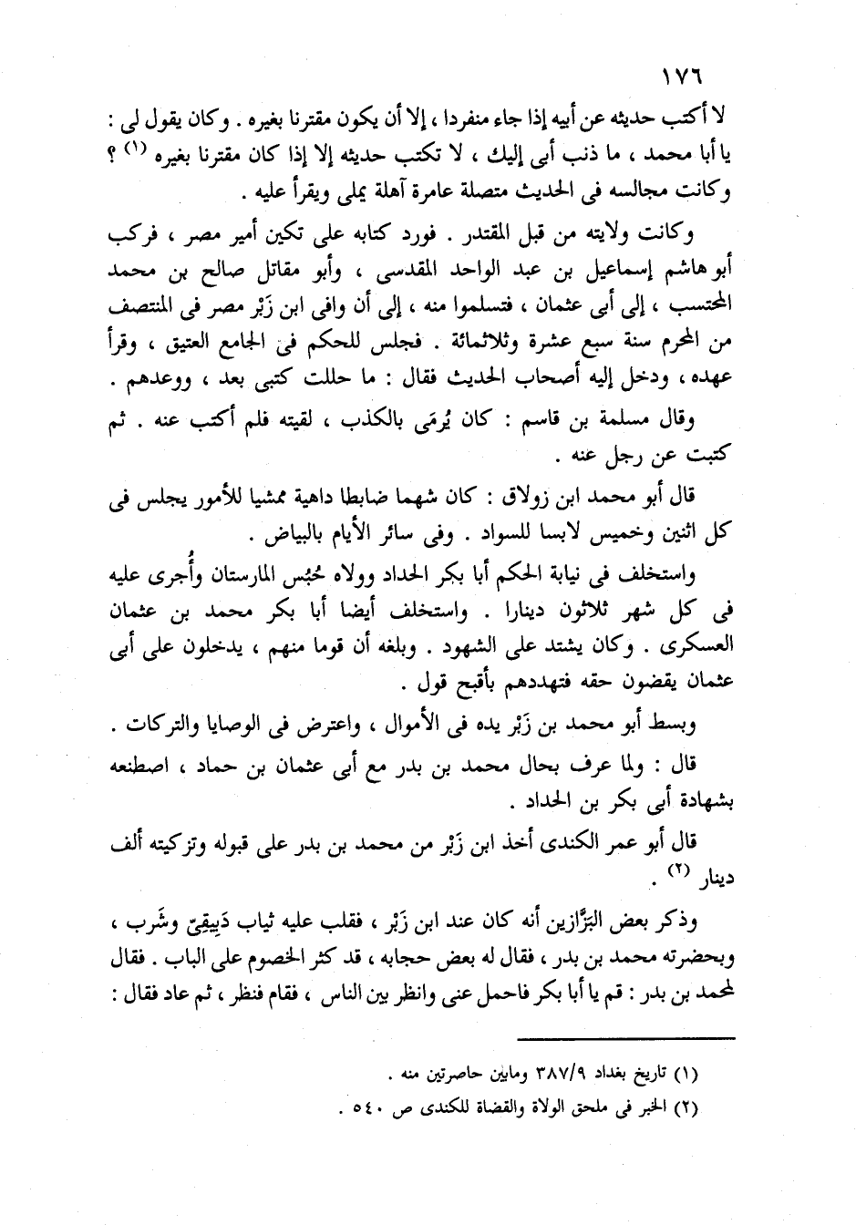 قال: ولما عرف بحال محمد بن بدر مع أبي عثمان بن حماد، اصطنعه بشهاة أبي بكر بن الحداد.