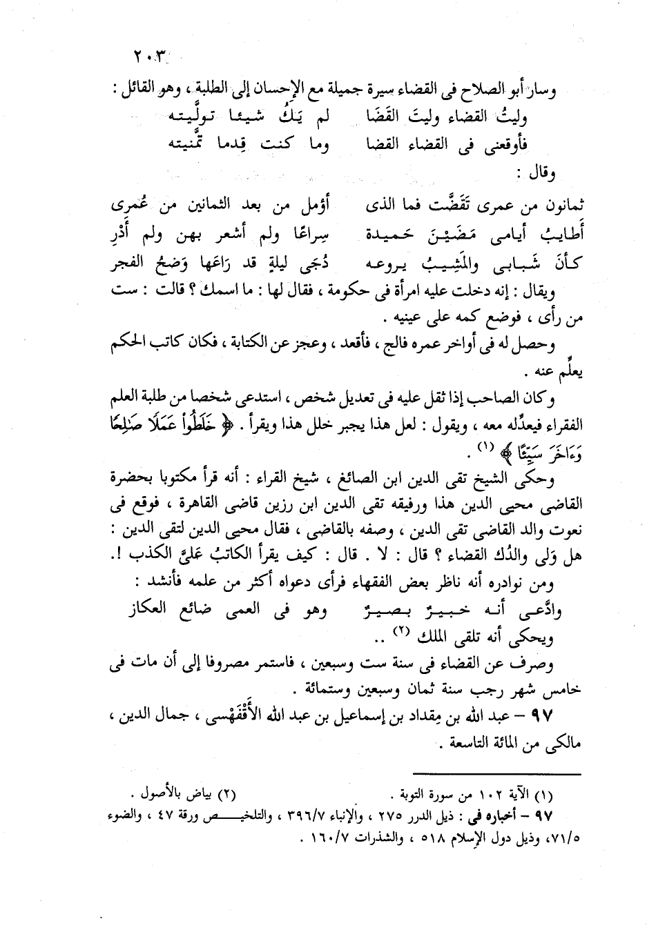 وسار أبو الصلاح في القضاء سيرة جميلة مع الإحسان إلى الطلبة، وهو القائل: