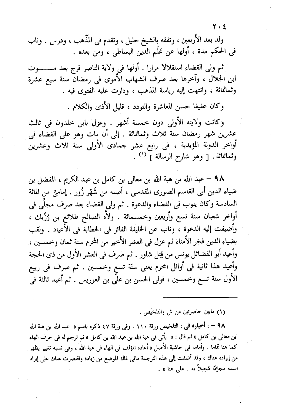 عبد الله بن هبة اللهب بن معالي بن كامل بن عبد الكريم، المفضل بن ضياء الدين أبي القاسم الصوري المقدسي، أصله من شَهْر زُور. إمامي من المائة السادسة