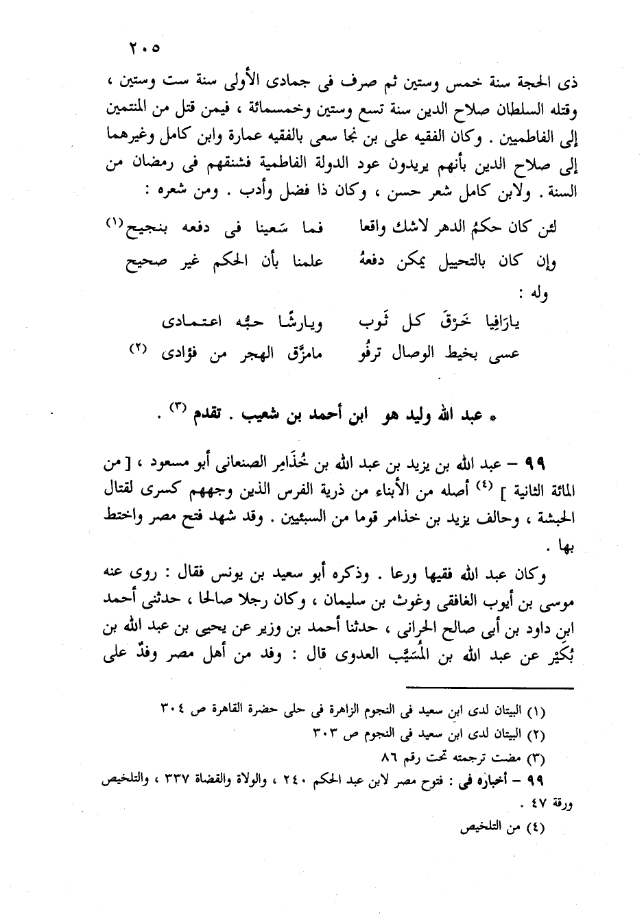 عبد الله وليد هو ابن أحمد بن شعيب. تقدم عبد الله بن يزيد بن عبد الله بن خُذَامِر الصنعاني أبو مسعود، من المائة الثانية أصله من الأبناء من ذرية الفرس الذين وجههم كسرى لقتال الحبشة، حالف يزيد بن خذامر قوماً من البسئيين. وقد شهد فتح مصر واختط بها.