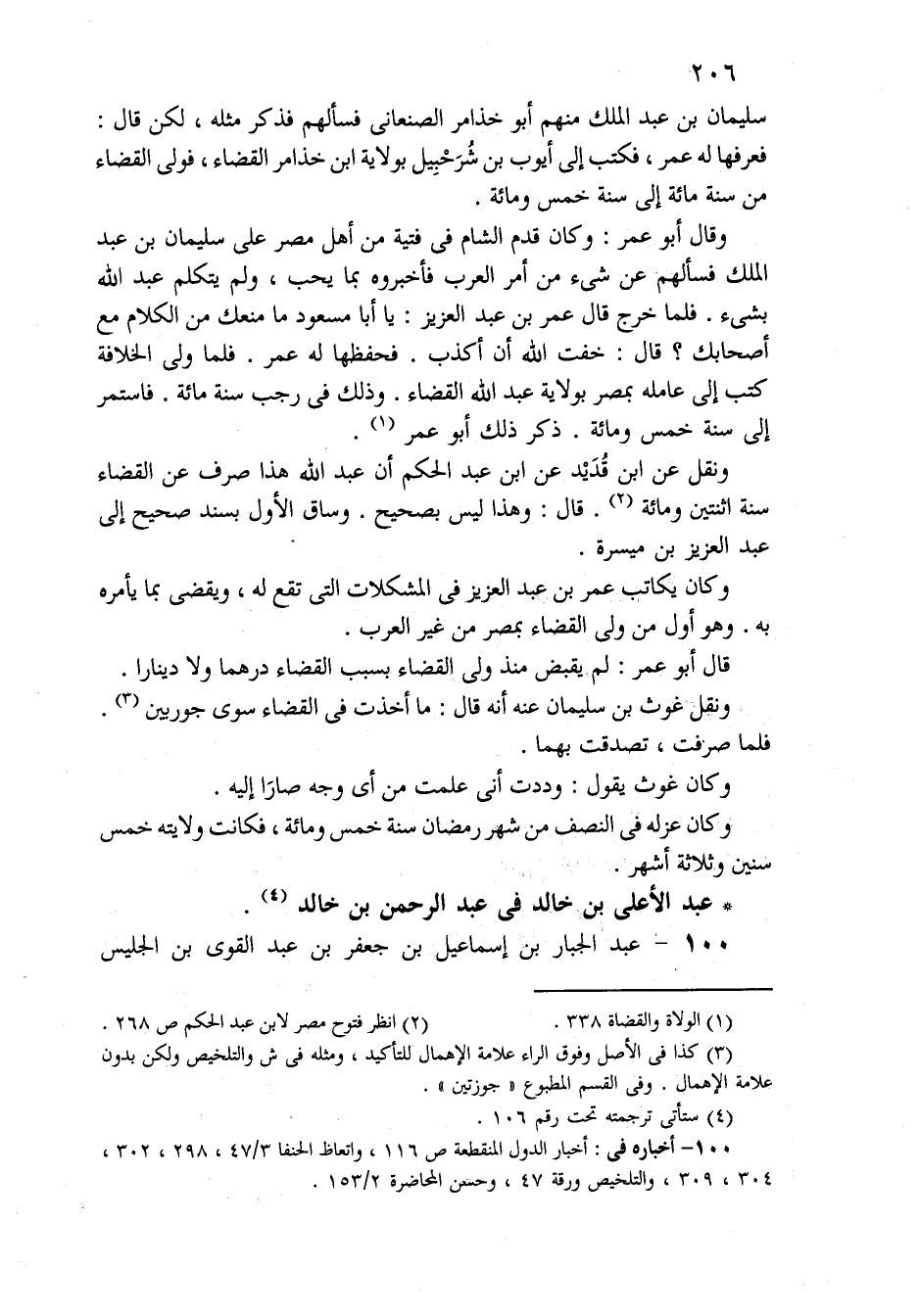 سليمان بن عبد الملك منهم أبو خذامر الصنعاني فسألهم فذكر مثله، لكن قال فهرفهما له عمر، فكتب إلى أيوب بن شُرَحُبِيل بولاية ابن خذامر القضاء، فولى القضاء من سنة مائة إلى سنة خمس ومائة.