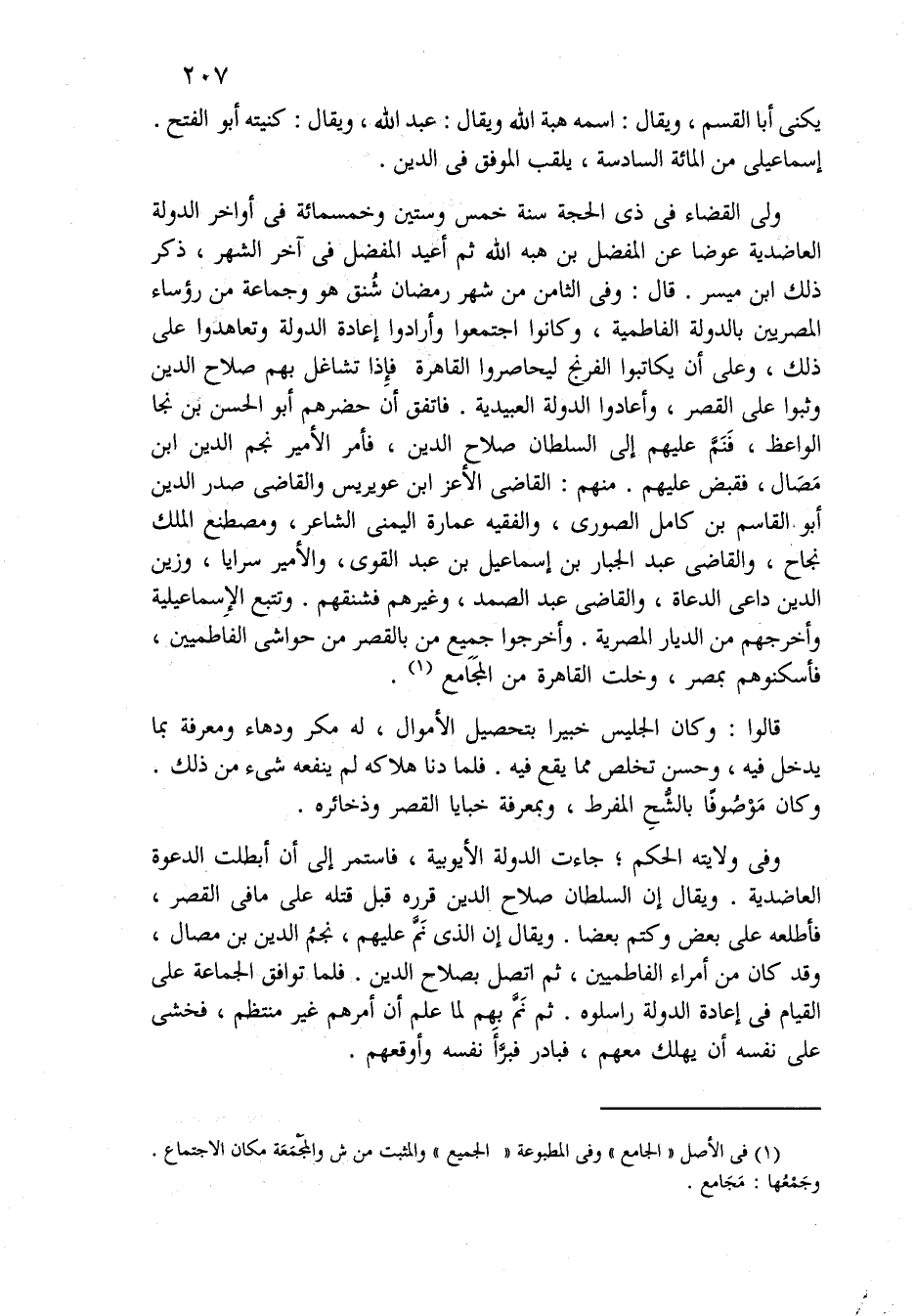 يكنى أبا القسم، ويقال: اسمه هبة الله ويقال: عبد الله، ويقال: كنيته أبو الفتح إسماعيلي من المائة السادسة، يلقب الموفق في الدين.