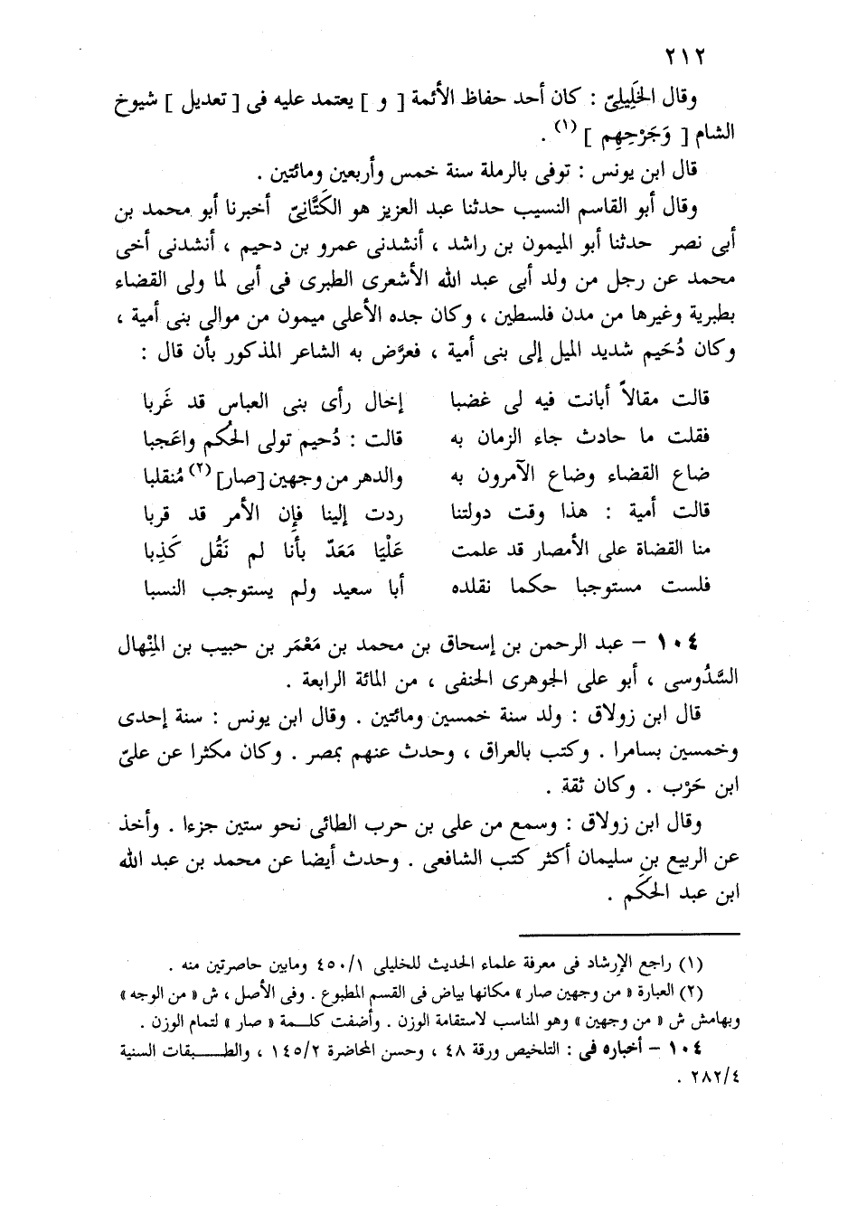 وقال الخّلِيلي: كان أحد حفاظ الأئمة ويعتمد عليه في تعديل شيوخ الشام وَجَرْحِهِم.