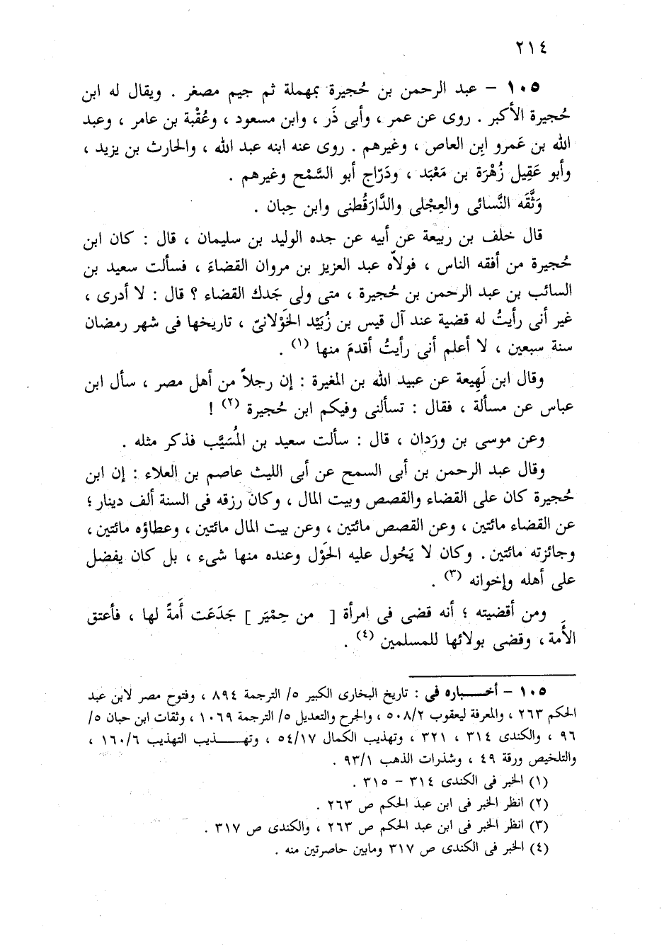 وقال ابن لَهِيعة عن عبيد الله بن المغيرة: إن رجلاً من أهل مصر، سأل ابن عباس عن مسألة، فقال: تسألني وفيكم ابن حُجيرة! وعن موسى بن ورَدان، قال: سألت سعيد بن المُسَيَّب فذكر مثله.