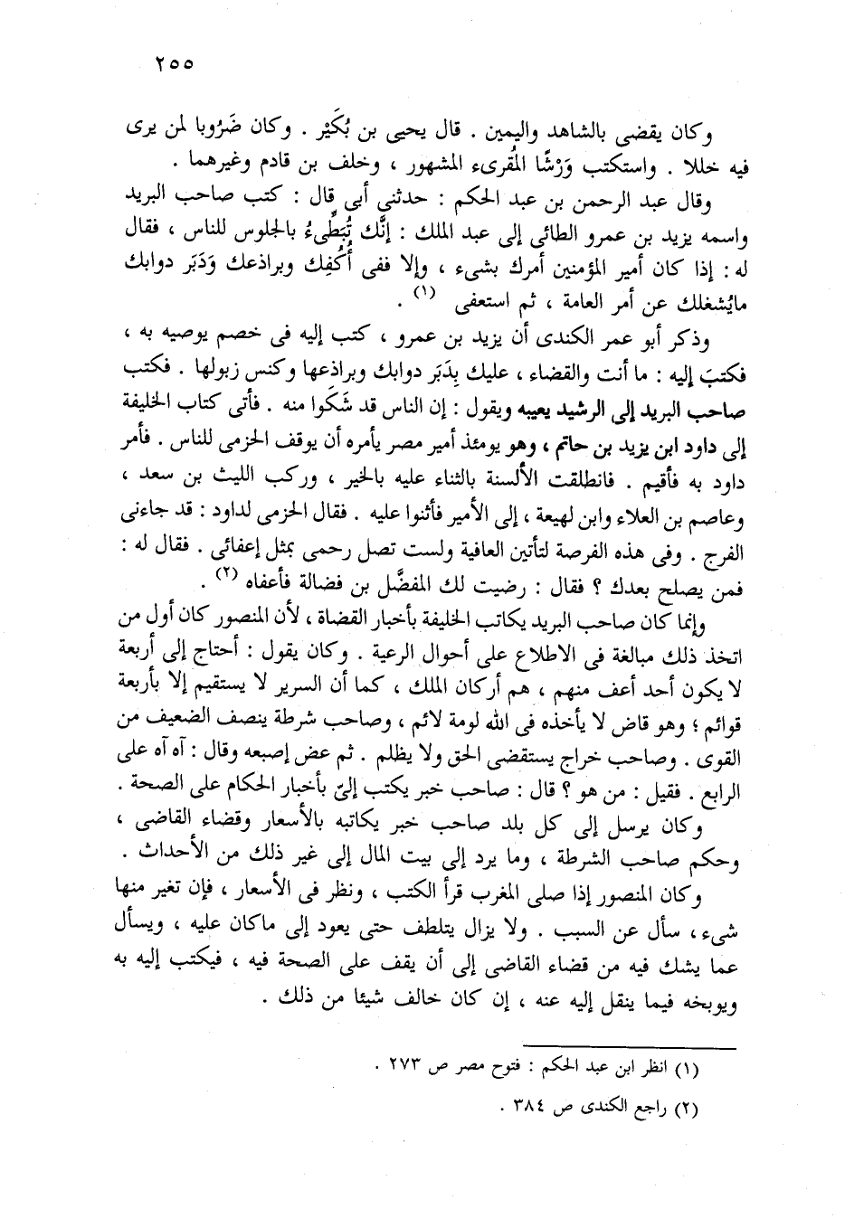 وإنما كَانَ صاحب البريد يكاتب الخليفة بأخبار القضاة، لأن المنصور كَانَ أول من اتخذ ذَلِكَ مبالغة فِي الاطلاع عَلَى أحوال