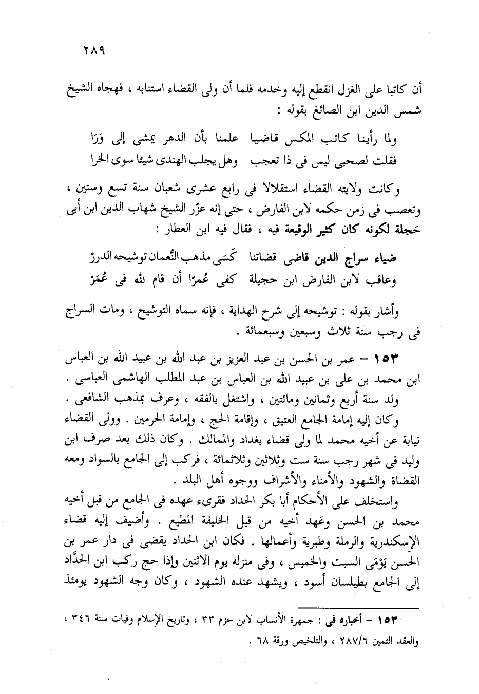 وعاقب لابن الفارض ابن حجيلة ... كفى عُمراً أن قام لله فِي عُمَرْ