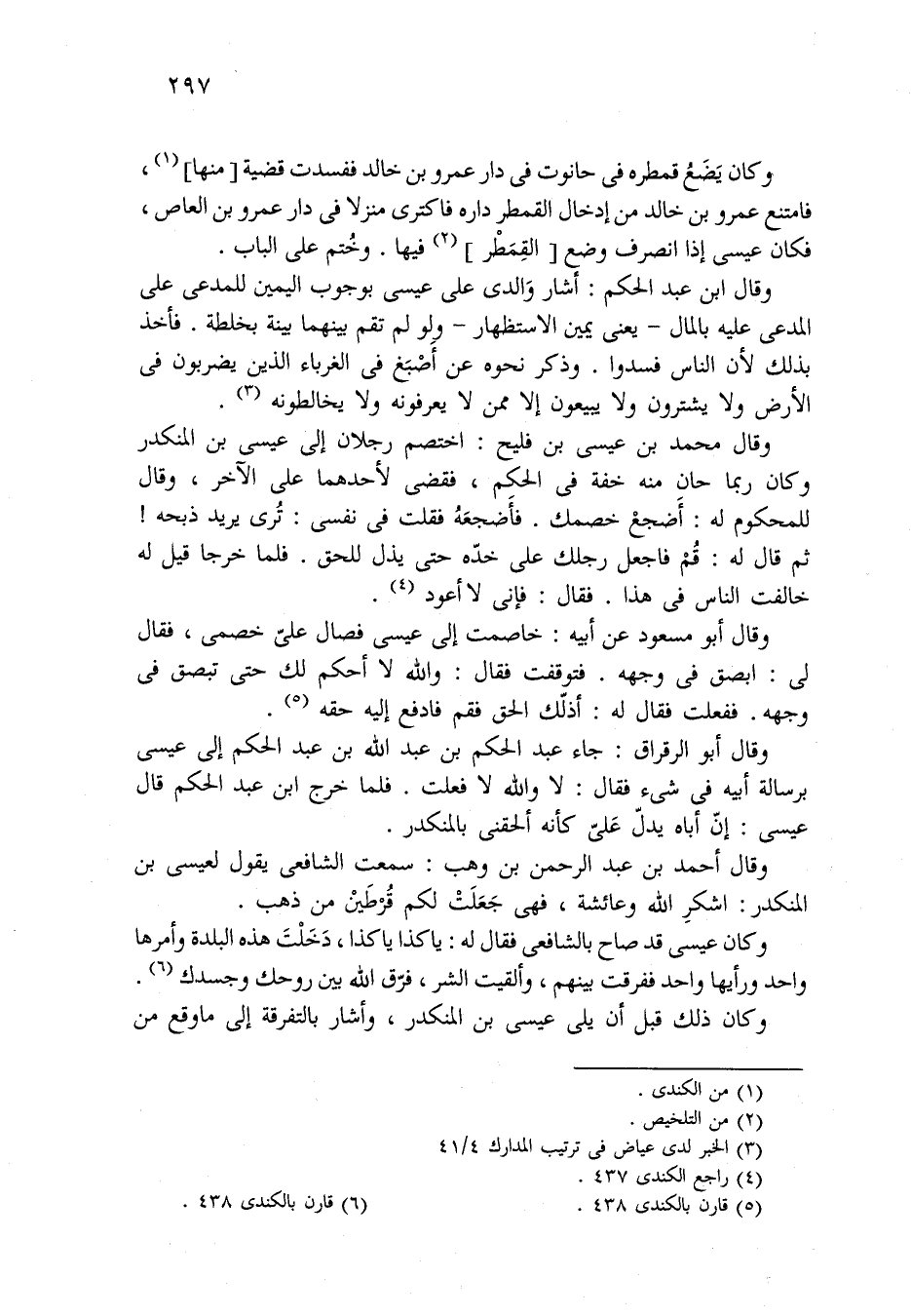 وكان ذلك قبل أن يلي عيسى بن المنكدر، وأشار بالتفرقة إلى ما وقع من