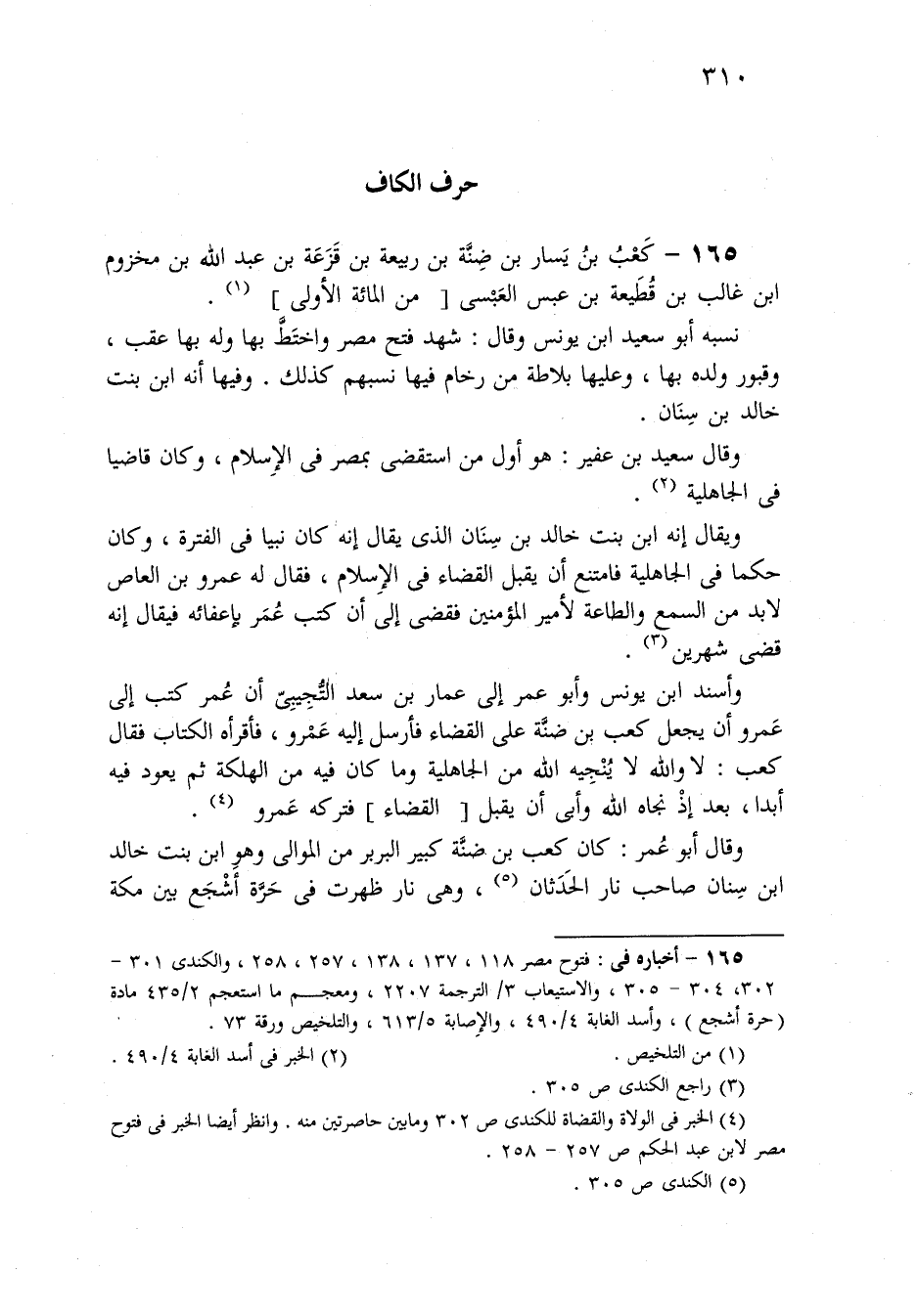 وقال أبو عُمر: كان كعب نب ضنَّة كبير البربر من الموالي وهو ابن من خالد ابن سِنان صاحب نار الحَدَثان، وهي نار ظهرت في حَرَّة أَشْجَع بني مكة